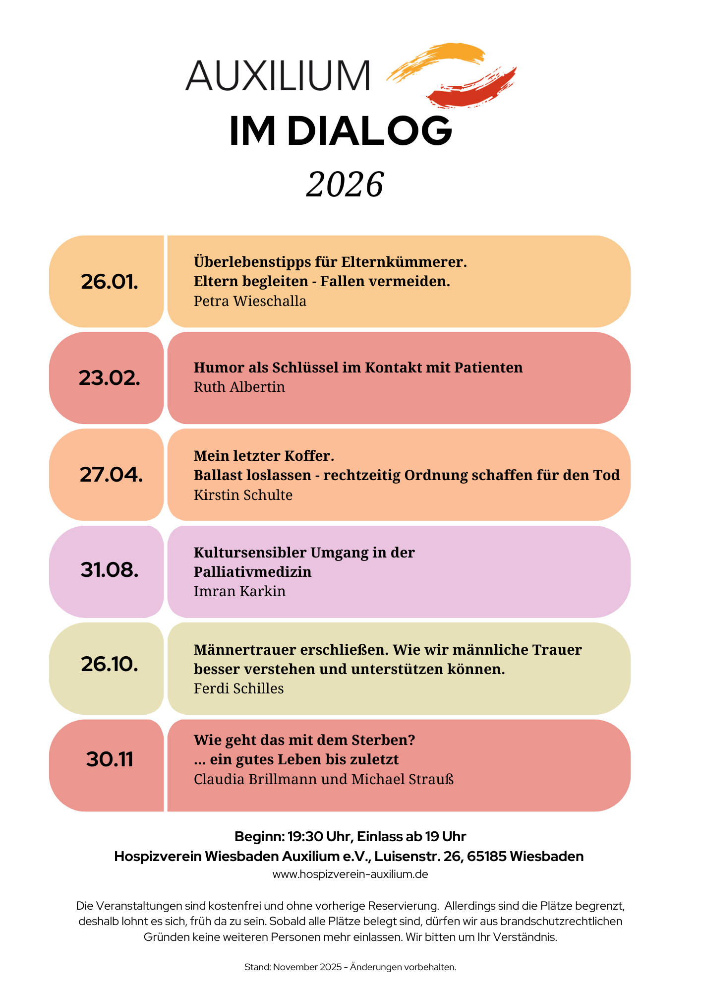 Hier finden Sie das Jahresprogramm Auxilium im DIalog 2026 als pdf zum runterladen.